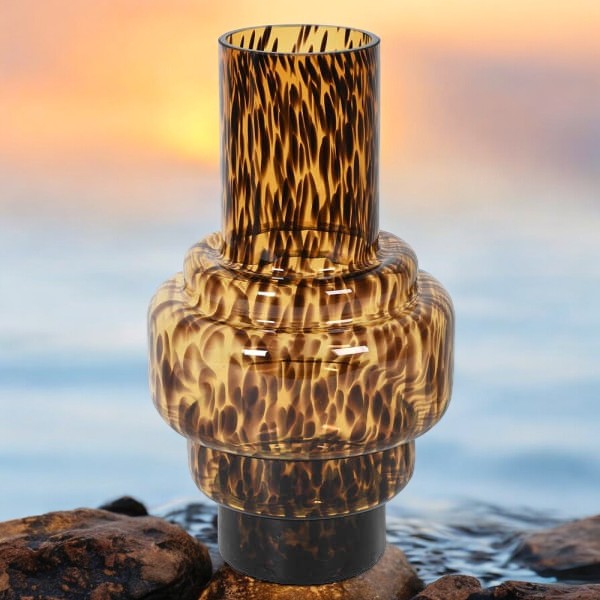 Amber and Black Animal Print Glass Vase