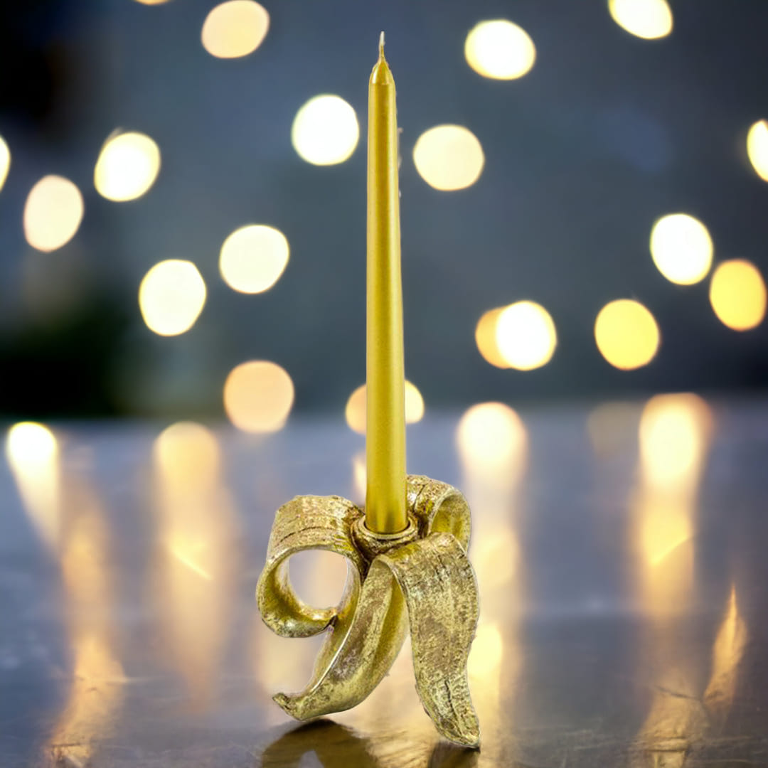 Peeled Antique Gold Banana Candle Holder