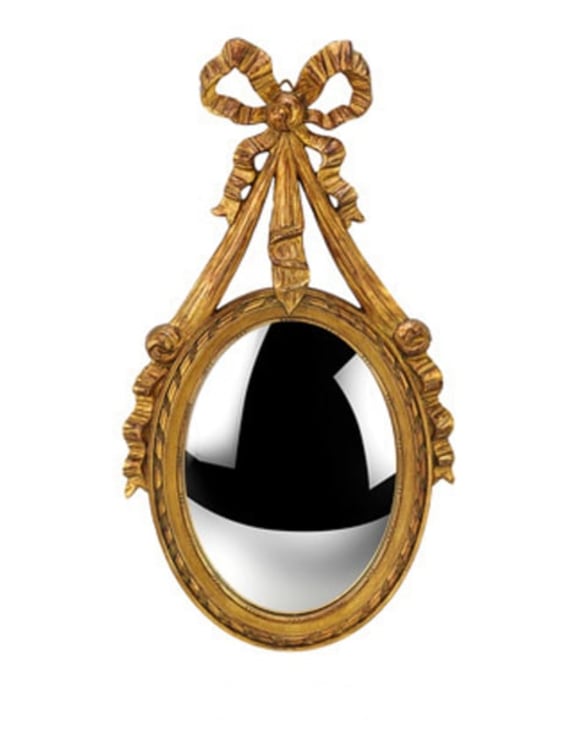 Antique Gold Ornate Ribbon Bow Convex Wall Mirror