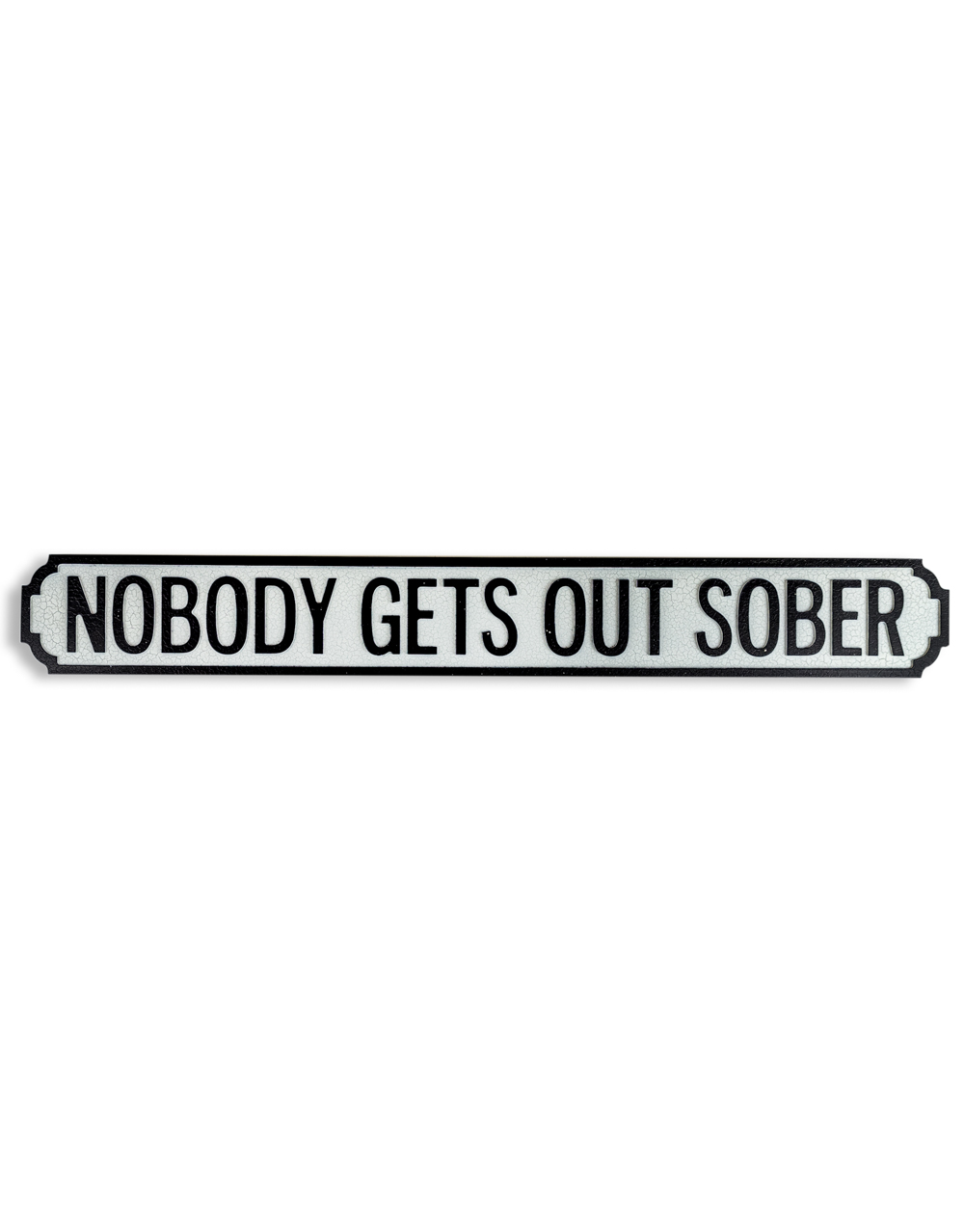 Antiqued Wooden Nobody Gets Out Sober Road Sign