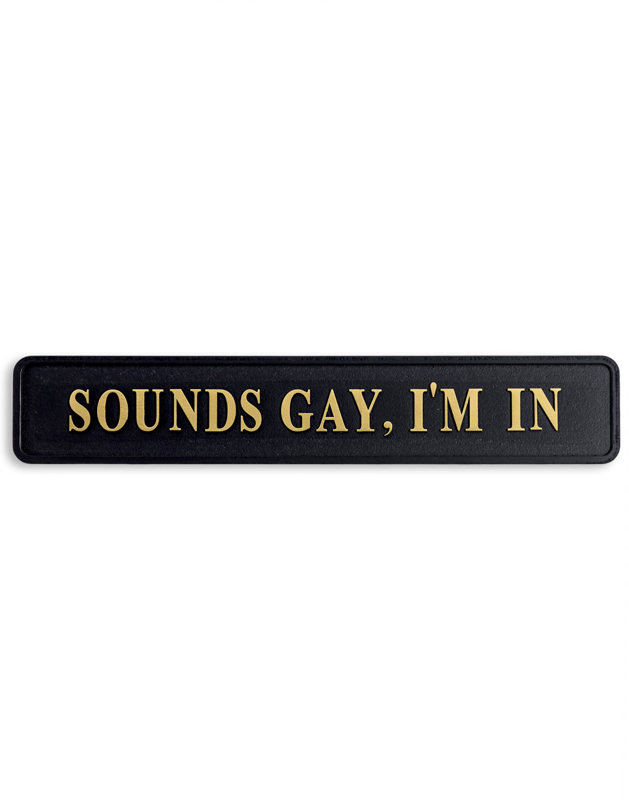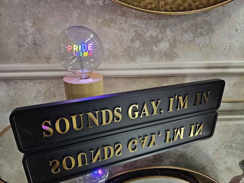Celebrate pride, humour, and unapologetic self-expression with our Black & Gold “Sounds Gay, I’m In” Wall Sign. This eye-catching piece is perfect for anyone who loves to make a bold (and fabulous) statement with their decor.