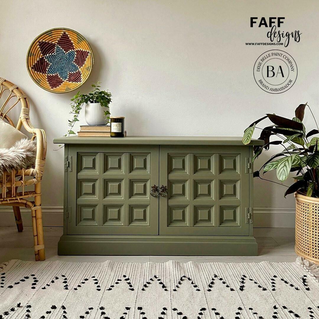 Paint with your favourite Dixie Belle Silk All-In-One Mineral Paint color. Apply with a dry Synthetic Brush.