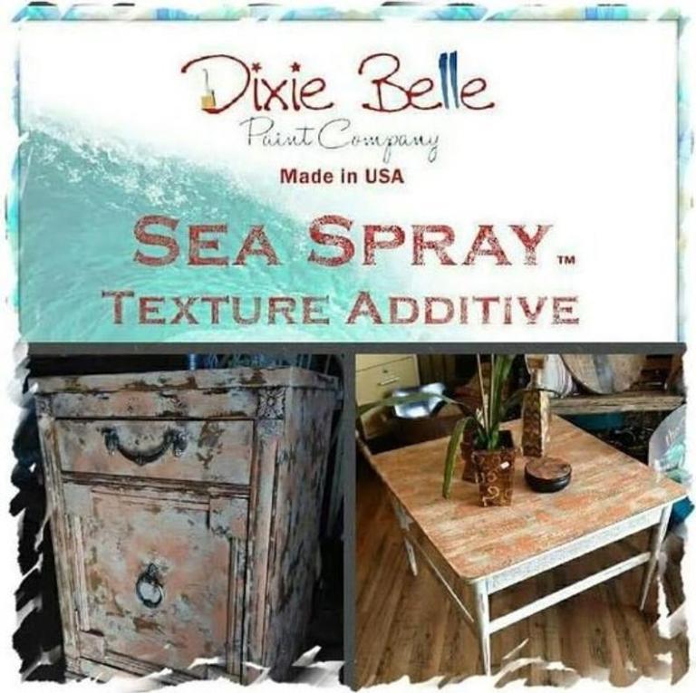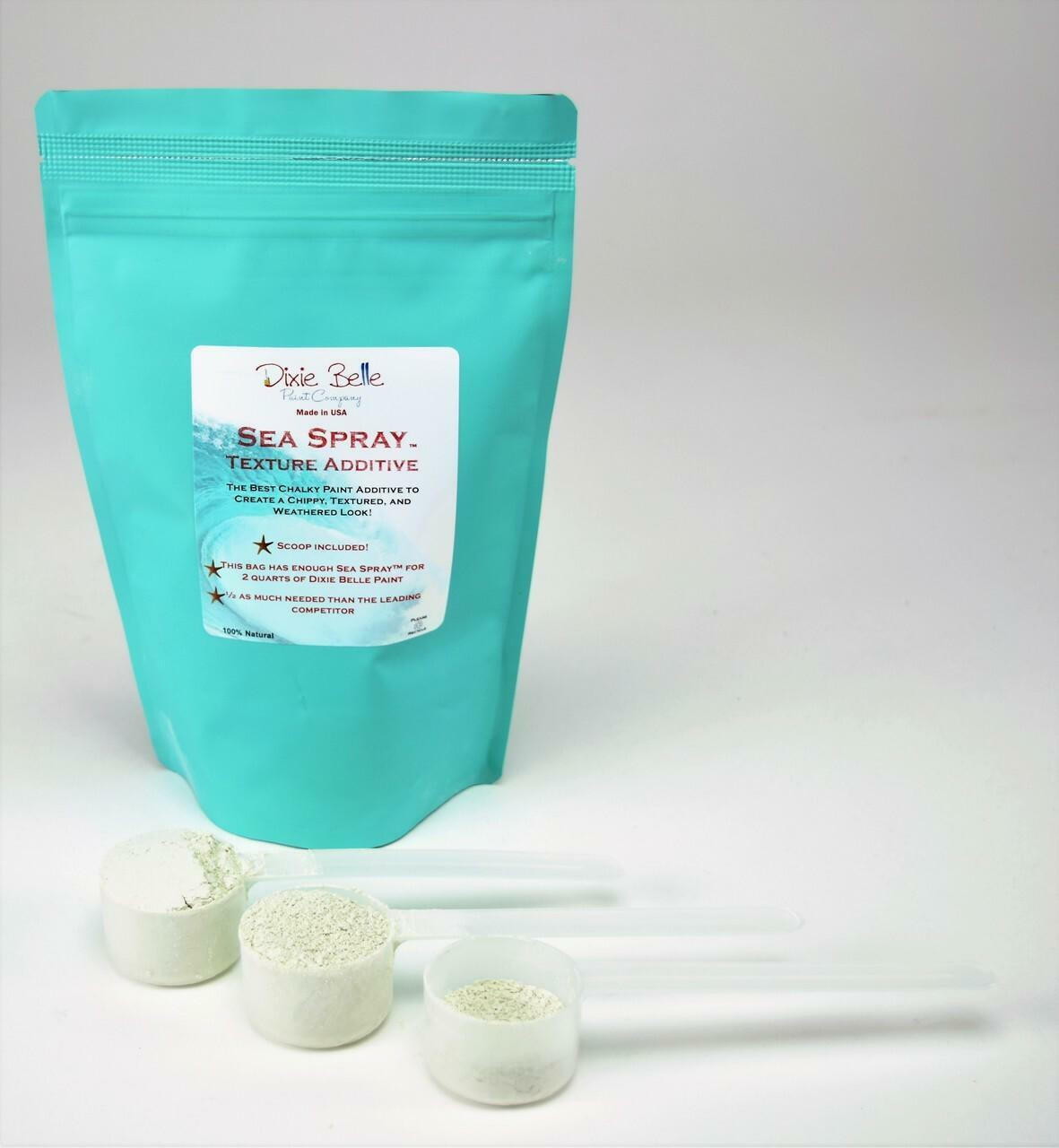 Imagine sun kissed seas, far reaching blue skies as far as the eye can see with waves crashing, throwing mist of Sea Spray that weathers your soul. You can now recreate those images easily with our Genuine Paint Additive with real Salt from the Seas. Create a Chippy, Textured and Sun-Weathered look, just like a day at the beach. Our Sea Spray is an all natural product that is made from the finest ingredients. We do recommend you wear proper breathing and eye protectants because of the powdery consistency. Mix 2 Level scoops of Sea Spray to 8 oz of the Best Chalk Mineral Paint, Dixie Belle. If needed mix another 1/2 scoop until you achieve a thick, brownie batter-like consistency. Using a paintbrush, dab and “smoosh” the bristles to form crest and peaks, just like ocean waves. Once tacky, gently brush down the crests and peaks, calming the seas and creating texture. You can also leave as is, keeping the seas stormy! For more dimension, when dry, simply add another paint color with or without Sea Spray, You can also Glaze with any of our amazing glazes for added dimension. Whole bag is enough for 2-32 ounces of paint. Our Sea Spray will go twice as far as the leading competitor. Scoop included. Please see other listings for a smaller size