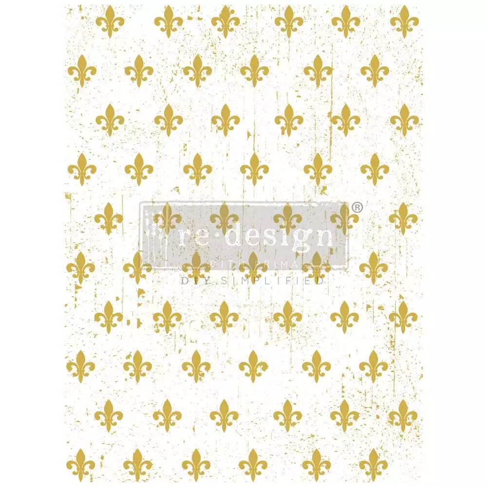 Fleur De Lis | Redesign with Prima Gold Foil Décor Transfer brings timeless European elegance and regal charm to your creative projects. Featuring the iconic fleur-de-lis motif adorned with a radiant gold foil finish, this décor transfer adds instant sophistication and luxurious detail to furniture, walls, mirrors, and decorative accents. Dimentions : 2 x 18”x24” Sheets