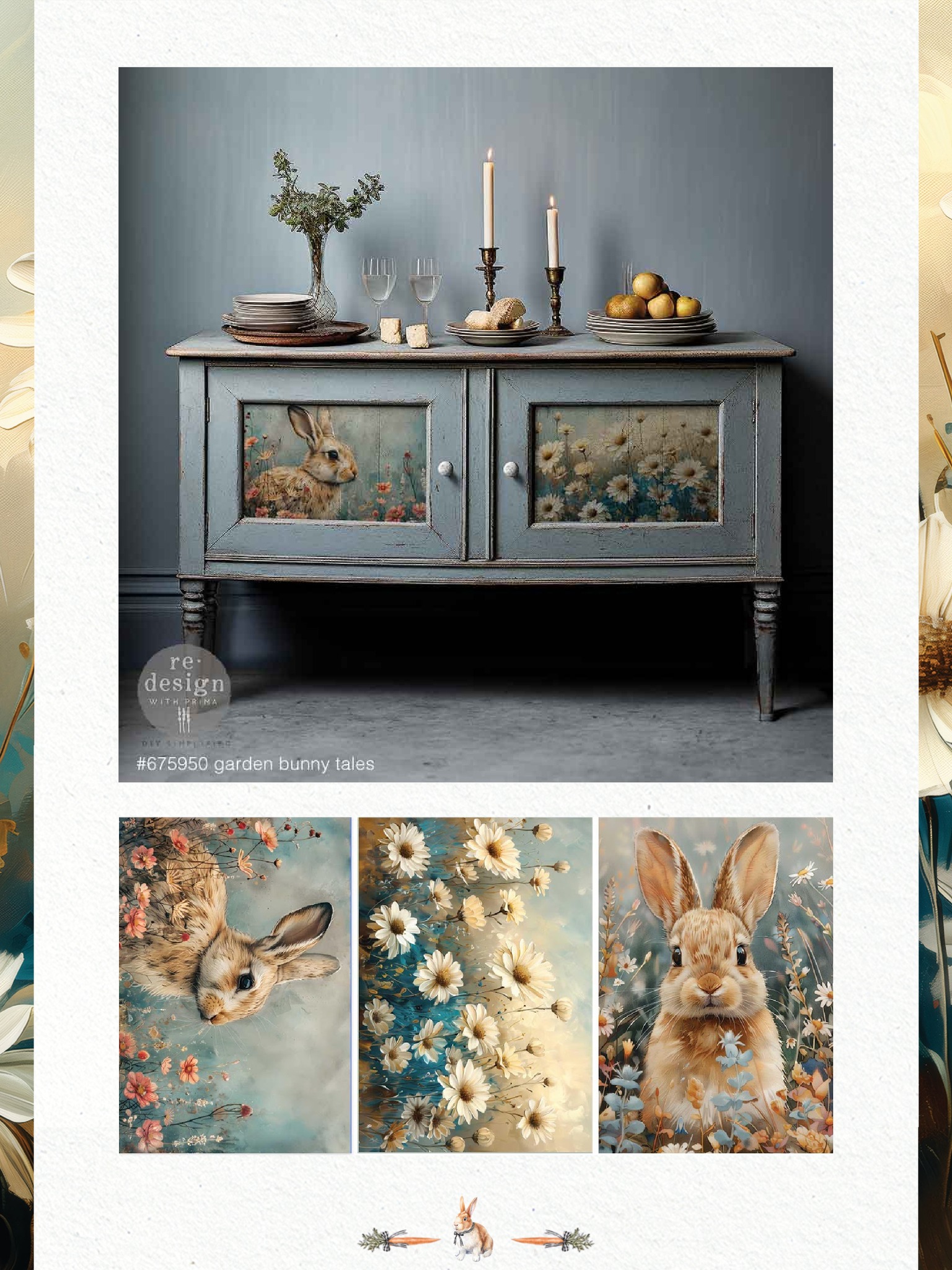 Bring whimsical charm and storybook sweetness to your creative projects with the Garden Bunny Redesign With Prima ales A3 Decoupage Fiber Paper Pack. This delightful collection features playful garden bunnies surrounded by florals, greenery, and soft pastel details—perfect for spring, Easter, and cottage-style décor.