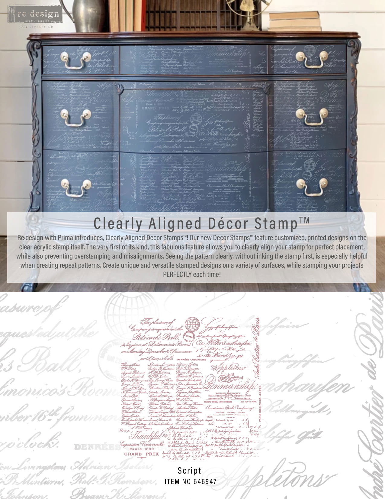 Introducing Clearly Aligned Decor Stamps! Featuring a customized printed design on the clear acrylic stamp itself. The very first of its kind, this feature allows you to clearly align your stamp for perfect placement, while also preventing overstating or misalignments. Seeing the pattern clearly without inking the stamp first is helpful when creating repeating patterns. Create unique and versatile stamped designs on a variety of surfaces while stamping perfectly each time!