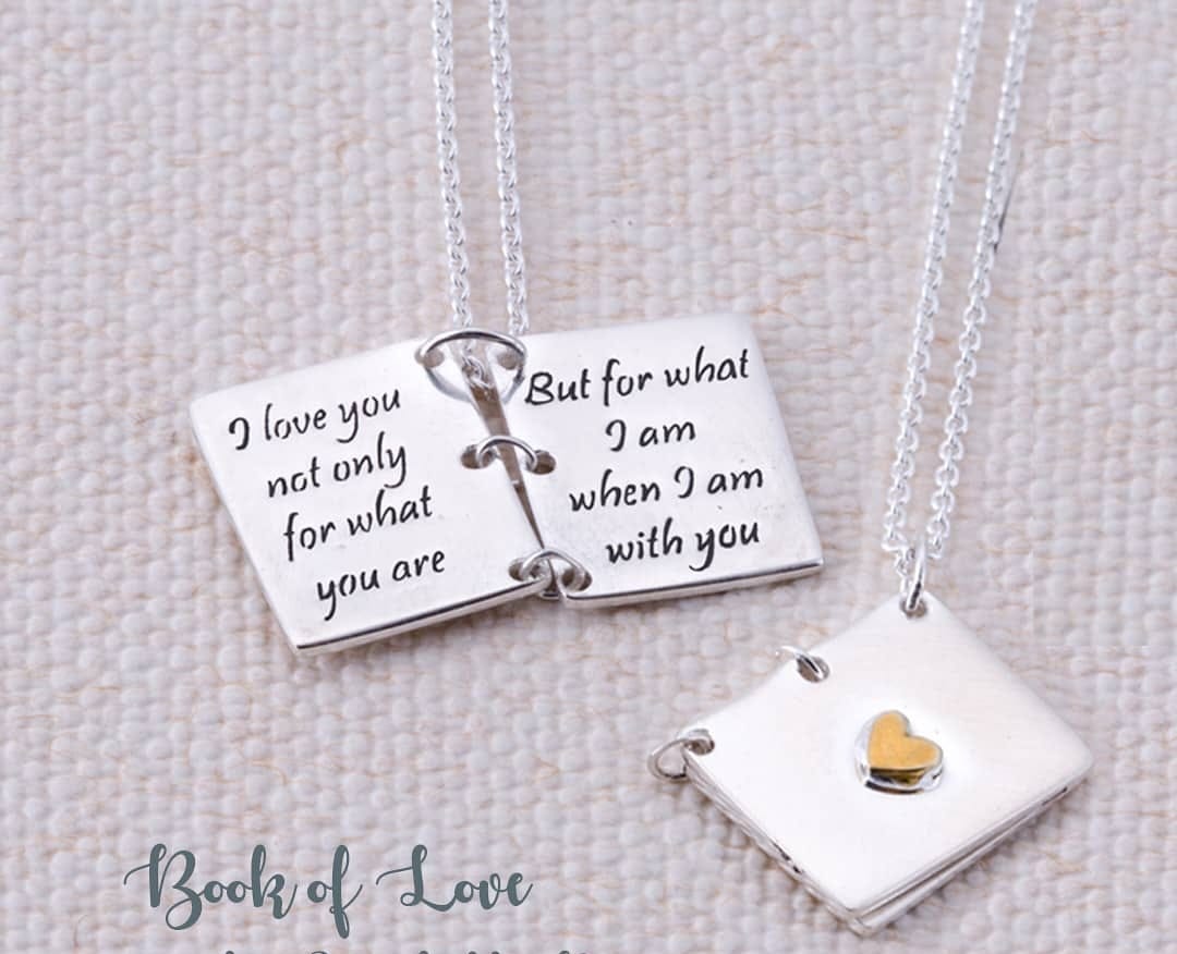 “I will not promise that everything is going to be all right, but I promise you I will be there when nothing is all right.” Warm someone’s heart with this promise sealed in a necklace. Such a beautiful gift for those ladies in your life, this stunning necklace will arrive in a gorgeous gift box complete with your necklace placed in a message in a bottle. Silver necklace with book charm. Material: Sterling silver chain, charm, lobster clasp and extension chain. Measurement: Length 42 cm + 6 cm extender. Charm 13 mm x 20 mm.