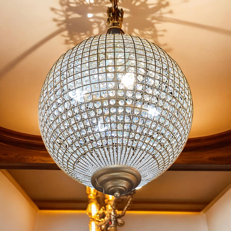 Introducing our Large/Medium Gold Globe Chandelier, a breathtaking statement piece that combines luxury and sophistication to illuminate your space. Crafted with exquisite attention to detail, this chandelier features a stunning globe design with a lustrous gold finish, creating a captivating focal point in any room. The intricate metalwork of the chandelier adds an elegant touch, while the globe shape lends a sense of grandeur and opulence to your space. With multiple light sources nestled within the globe, this chandelier provides ample illumination, casting a warm and inviting glow throughout the room. Its timeless design and luxurious finish make it a versatile addition to a variety of decor styles, from traditional and classic to modern and contemporary. Let its radiant glow and striking design create an ambience of elegance and sophistication, making a bold statement that leaves a lasting impression on all who enter your home. The height given does not include chain or ceiling fixings
