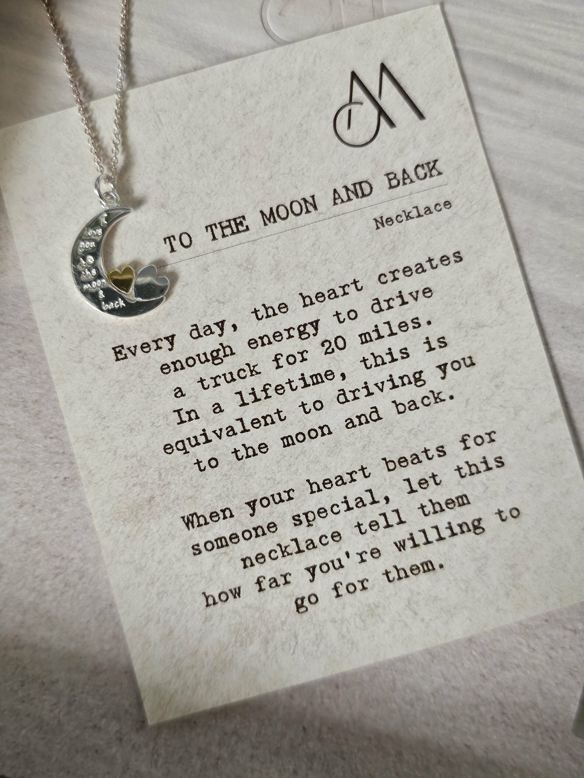 Every day, the heart creates enough energy to drive a truck for 20 miles. In a lifetime, this is equivalent to driving you to the moon and back. When your heart beats for someone special, let this necklace tell them how far you’re willing to go for them.