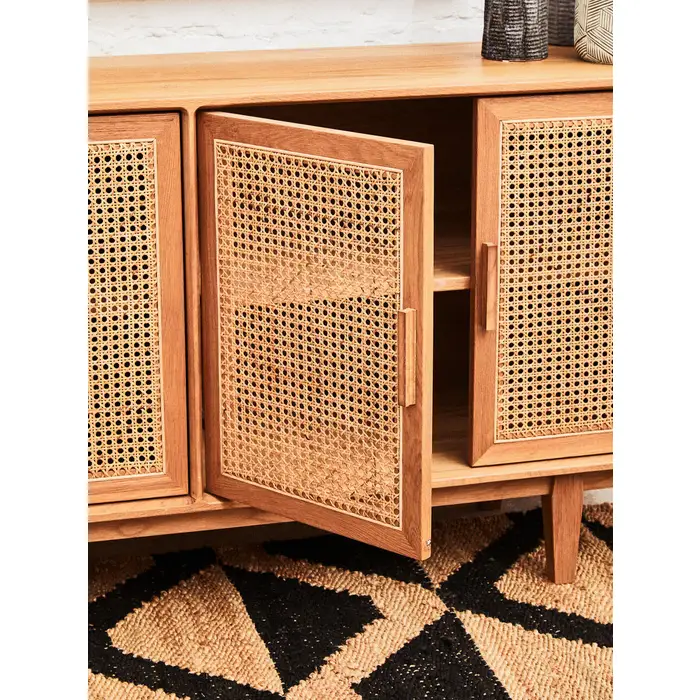 Lyon 4 Door Natural Rattan And Oak Sideboard