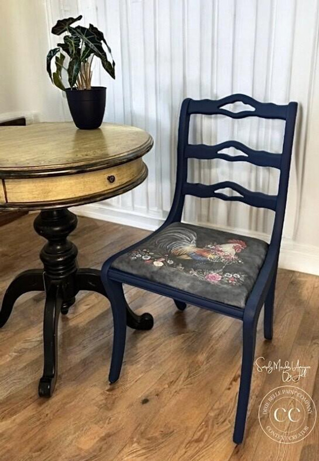 Add a touch of rustic charm with our Royal Rooster decoupage paper. Hand-drawn, this design features a proud rooster in a floral wreath, standing amidst a bed of blooming flowers. Perfect for adding a whimsical flair to your projects, it brings elegance and countryside beauty to any decor. If you’d like the decoupage image to pop, paint white under this particular decoupage design. A3 – 11.7″ x 16.54″ Designed by Low Flying Angels How to use. Step 1:Non-painted surfaces clean with White Lightning and rinse with clean water. Note: If applying on a painted surface clean the piece with a damp lint-free cloth. Step 2:Once dry apply Dixie Belle Clear Coat. Step 3 While still wet place decoupage paper. Step 4:Apply another coat of Dixie Belle Clear Coat on top of the decoupage paper and allow it to dry completely.Recommended Products: White Lightning, Clear Coat, Synthetic Brush, Scrubby Soap