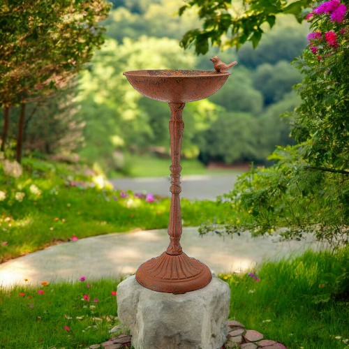 Rustic Design: Featuring a weathered, vintage finish, this bird bath is designed to blend seamlessly with natural surroundings. The intricate detailing and distressed look give it an authentic, rustic appeal that enhances the beauty of your garden.