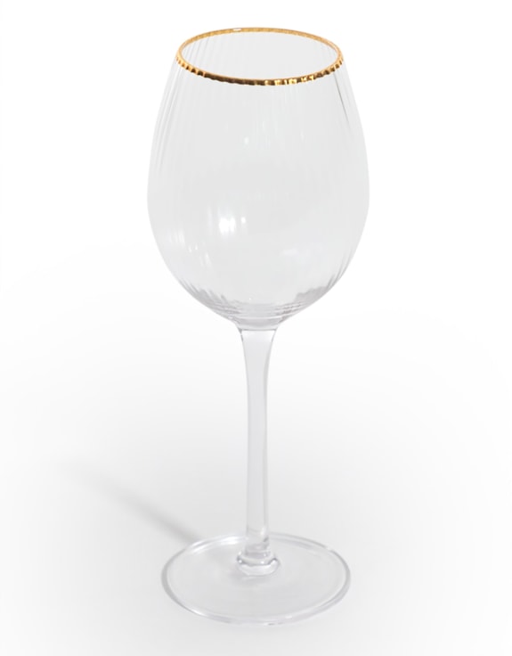 This set of 6 traditional wine glasses with exquisite gold rims adds a touch of elegance to any occasion. They are perfect for serving red, white, or rosé wine in timeless style. Dimensions H:21cm W:7cm D:7cm
