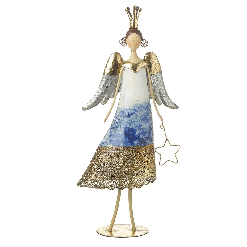 Standing Angel Holding Cut-Out Star Illuminate your space with our stunning Standing Angel Holding Cut-Out Star. This exquisite piece embodies hope and guidance, making it a perfect addition to your home decor or a heartfelt gift for someone special. Features:
