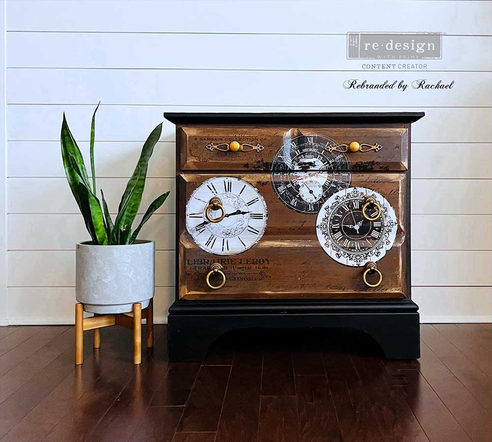 The Vintage Clocks Middy Decor Transfer by Redesign with Prima features intricate antique clock faces, numerals, and ornate details that bring classic elegance to furniture, cabinets, walls, and decorative accents. Perfect for adding a vintage, timeless touch to any project.