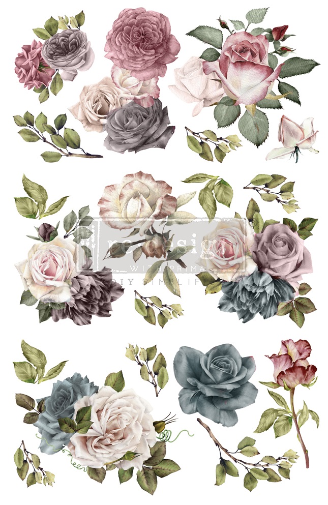 This pretty, feminine rose transfer includes floral sections of varying sizes in purple, pink, plum and green accents. Explore the many possibilities of transforming your home with Decor Transfers. Exceptionally detailed, gorgeously composed and effortlessly easy to apply, these transfers transform your living space and are versatile to be used on furniture, walls, wood panels, doors and many more surfaces. The possibilities are endless. Transfer Dimensions: Sheets – 3 Width – 61 cm (24”) Height – 89 cm (35”) Please Note – this transfer comes in individual images that can be cut out for easy placement. Each image is an individual transfer for application onto your project. It will be mailed in a cardboard tube to ensure it reaches you in immaculate condition.