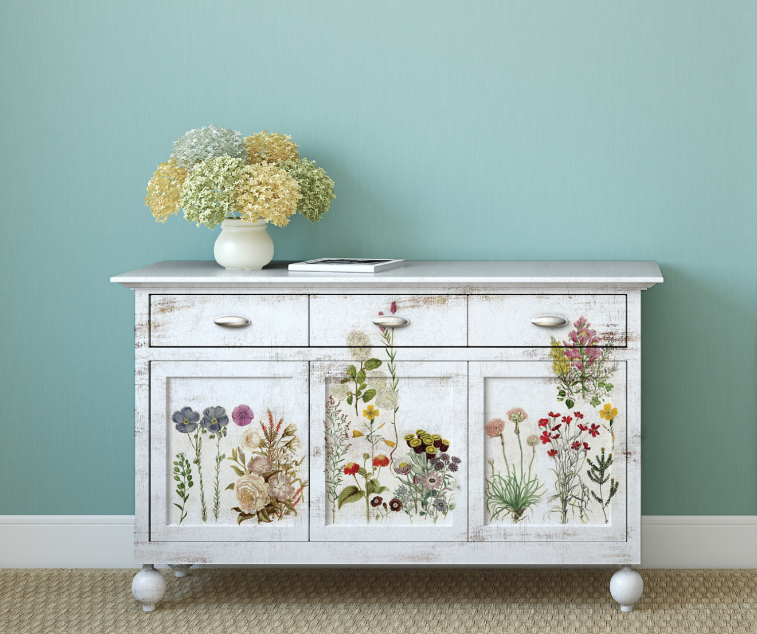 Apply Dixie Belle Clear Coat Sealer (your choice of finish) to the surface of your project. Lay your tissue paper in position and flatten out from the centre, talking care to eliminate air bubbles to ensure a good adhesion. Apply a further coat over the top.