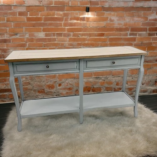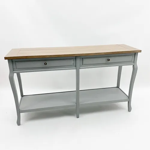 Introducing our 140cm Wooden 2-Drawer Console Table in Grey – a sophisticated and practical addition to your home decor. Crafted with quality wood and finished in a chic grey hue, this console table combines style and functionality seamlessly. Measuring 140cm in length, this console table features a sleek and elegant design that effortlessly complements modern and contemporary interiors. Its two drawers offer convenient storage for keys, mail, and other essentials, helping you keep your space organized and clutter-free. Additionally, the spacious tabletop provides ample room for displaying decor, plants, or lighting fixtures. The grey finish adds a touch of sophistication and versatility to any room, making it easy to integrate into your existing decor scheme. Whether placed in your entryway, hallway, living room, or bedroom, this console table adds both style and practicality to your space. Elevate your home decor with our 140cm Wooden 2-Drawer Console Table in Grey and bring both elegance and organization to your living space. With its timeless design and neutral color palette, it’s sure to enhance the aesthetic of your home while providing valuable storage solutions. 140CM