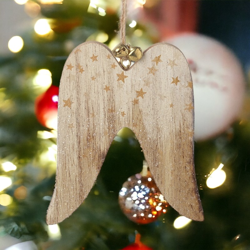 Wooden Hanging Angel Wings With Bells